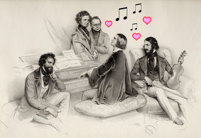 Liszt (el del corte de pelo con las tijeras de podar) y otros románticos dejándose llevar por las musas.